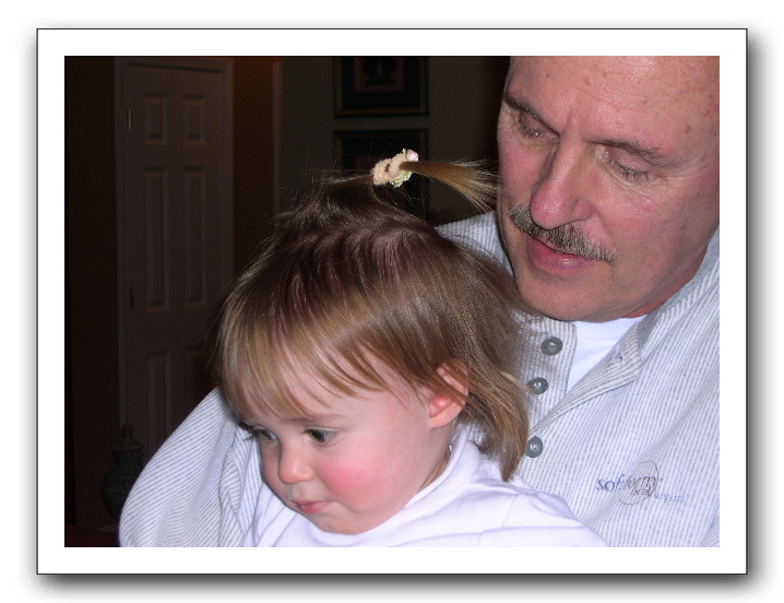 with Granddad, and an interesting hair arrangement
