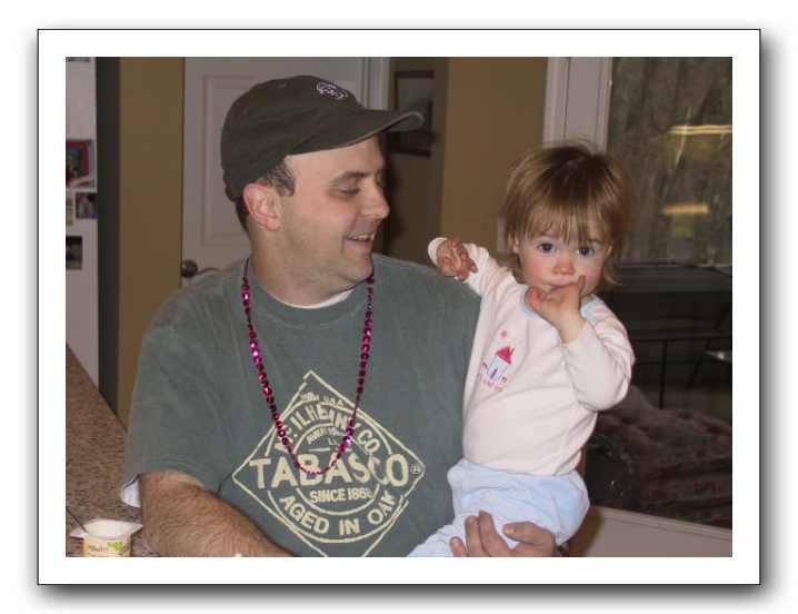 dressing me up in Mardi Gras beads