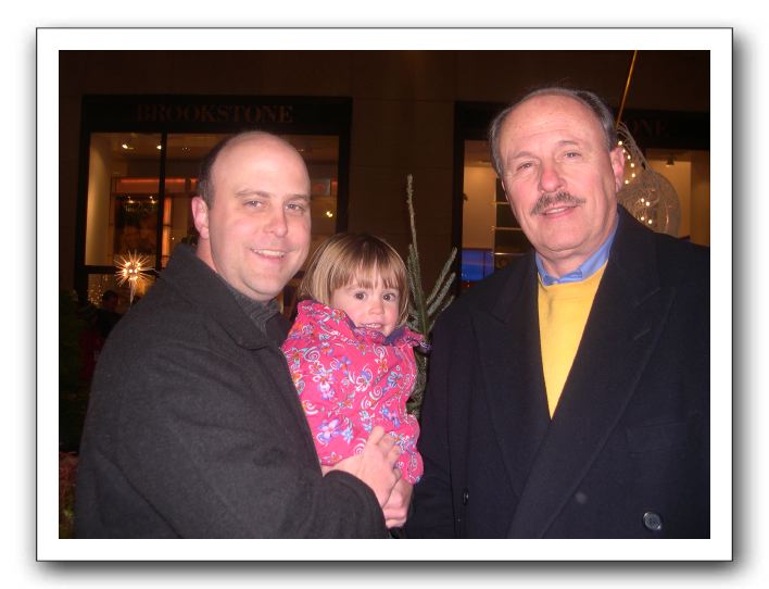 posing with Daddy and Granddad at the Rockefeller Xmas tree (which she was unimpressed by!)