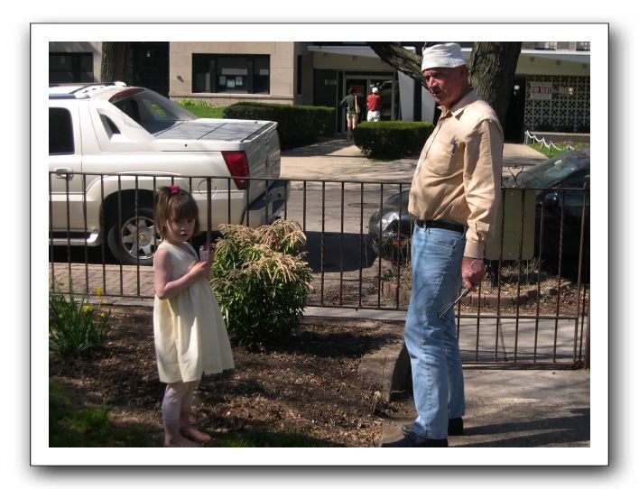 M & Gran-Pere about to do some power gardening